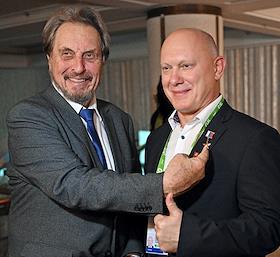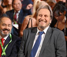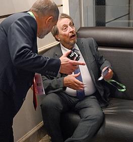 Празднование 20-летия международного телеканала RT (Russia Today) в Государственном академическом Большом театре. Отец Илона Маска предприниматель Эррол Маск (слева) и Герой России, депутат Московской городской думы, космонавт Олег Артемьев (справа) во время празднования.