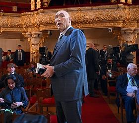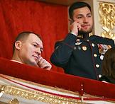Празднование 20-летия международного телеканала RT (Russia Today) в Государственном академическом Большом театре. Министр спорта России Михаил Дегтярев (слева) во время празднования.