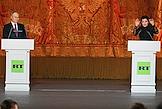 Церемония празднования 20-летия международного телеканала RT (Russia Today) в Государственном академическом Большом театре (ГАБТ) России. Президент Русского общественного фонда Александра Солженицына Наталья Солженицына (слева) и общественный и интернет-деятель, исследователь книжной культуры, библиофил Михаил Сеславинский (справа) на церемонии.