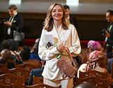 Церемония празднования 20-летия международного телеканала RT (Russia Today) в Государственном академическом Большом театре (ГАБТ) России. Корреспондент RT Саския Тейлор на церемонии.