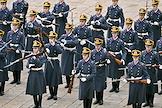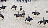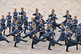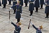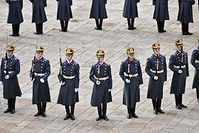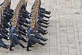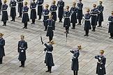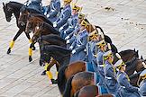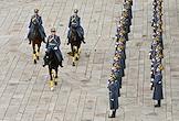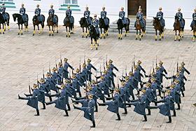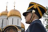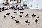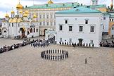 Церемония развода пеших и конных караулов Президентского полка ФСО России на Соборной площади Московского Кремля. Военнослужащие Президентского полка во время церемонии.