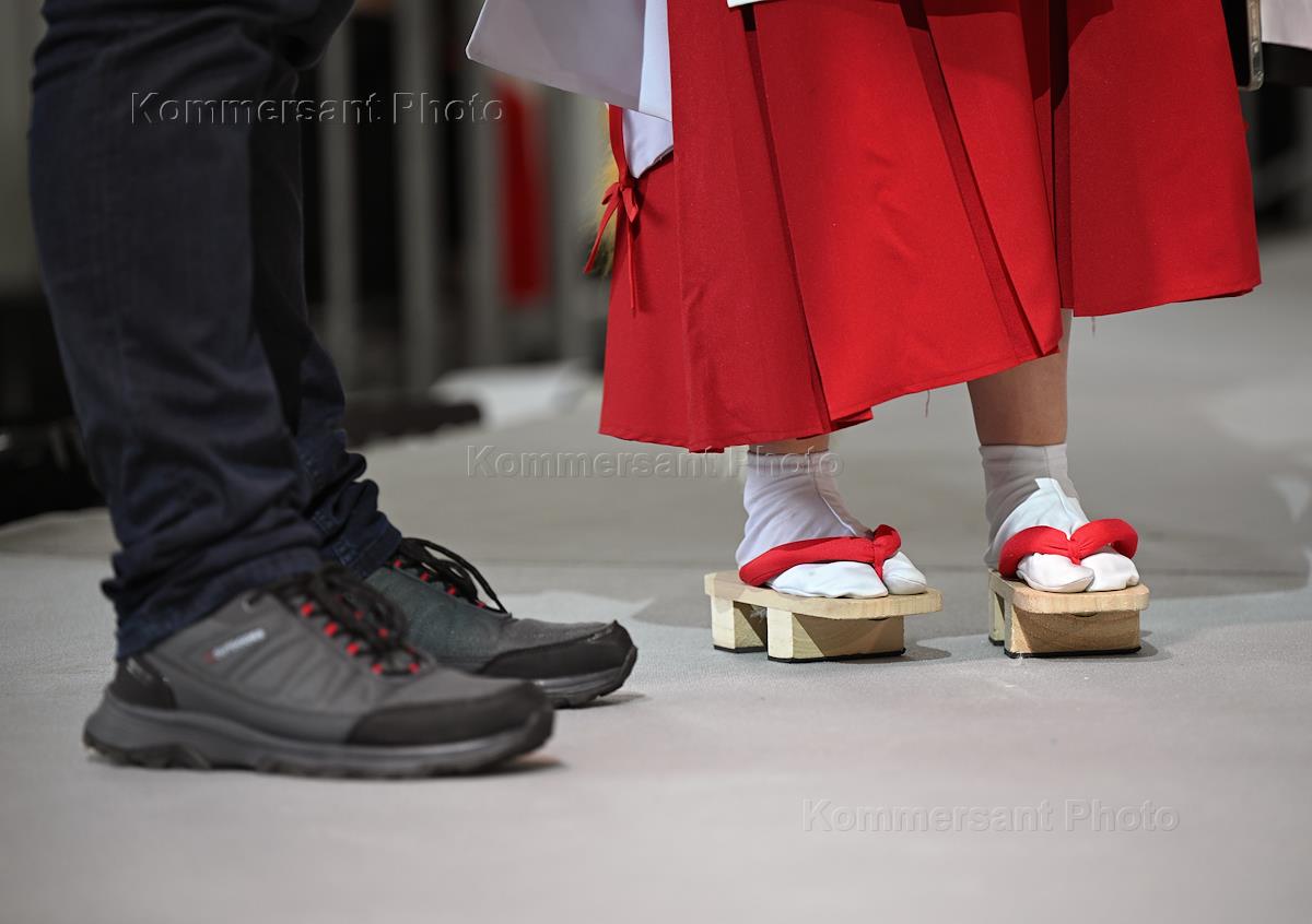 Выставка японской культуры Hinode Japan в выставочном центре "Тимирязев Центр". Жанровая фотография. Женские ноги в национальной японской обуви - гэта.