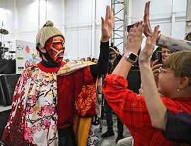 Выставка японской культуры Hinode Japan в выставочном центре "Тимирязев Центр". Перфоманс-артист Эниси во время выступления на выставке.