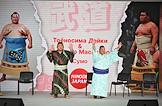 Выставка японской культуры Hinode Japan в выставочном центре "Тимирязев Центр". Сумоисты Дайкихо Масахиро (справа) во время встречи со зрителями на выставке.