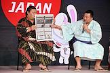 Выставка японской культуры Hinode Japan в выставочном центре "Тимирязев Центр". Сумоисты Дайкихо Масахиро (слева) и Тоёносима Дайки (справа) во время встречи со зрителями на выставке.
