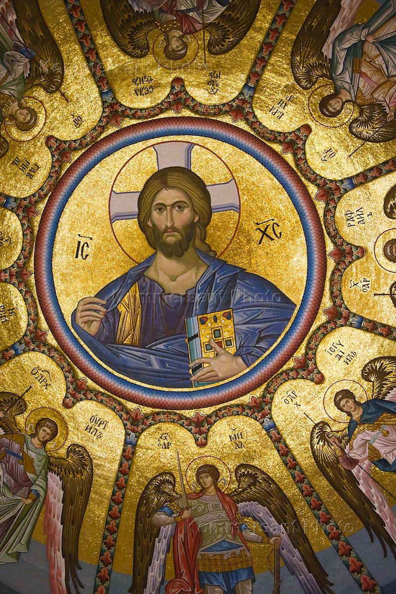 Церемония освящения храма Святого великомученика Георгия Победоносца — главного храма Южного военного округа, возведенном в Западном микрорайоне Ростова-на-Дону. Жанровая фотография. Интерьер храма.