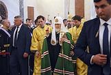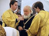 Церемония освящения храма Святого великомученика Георгия Победоносца — главного храма Южного военного округа, возведенном в Западном микрорайоне Ростова-на-Дону. Патриарх Московский и Всея Руси Кирилл (в центре) на церемонии.