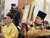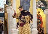 Церемония освящения храма Святого великомученика Георгия Победоносца — главного храма Южного военного округа, возведенном в Западном микрорайоне Ростова-на-Дону. Священнослужитель во время церемонии.