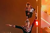 Шоу Алексея Немова "Легенды спорта" во Дворце спорта "Мегаспорт". Артист балета Иван Михалев и гимнастка Дина Аверина во время шоу.
