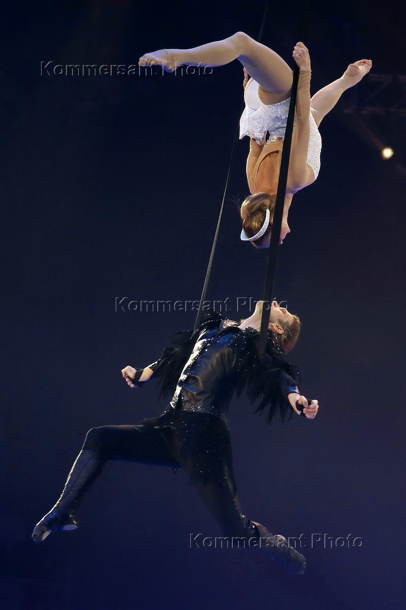 Шоу Алексея Немова "Легенды спорта" во Дворце спорта "Мегаспорт". Воздушные гимнасты во время шоу.