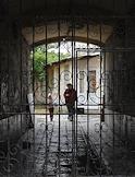 Жанровая фотография. Железные кованные ворота в арке жилого дома.