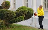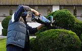 Жанровая фотография. Мужчина во время стрижки кустарника в парке историко-архитектурного комплекса Астраханского кремля.