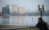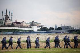 Виды Казани. Жанровая фотография. Сотрудник охраны на площади у Центра семьи "Казан".