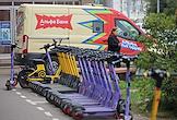 Виды Казани. Жанровая фотография. Парковка электросамокатов кикшеринговых компаний "Юрент" и Whoosh.