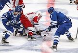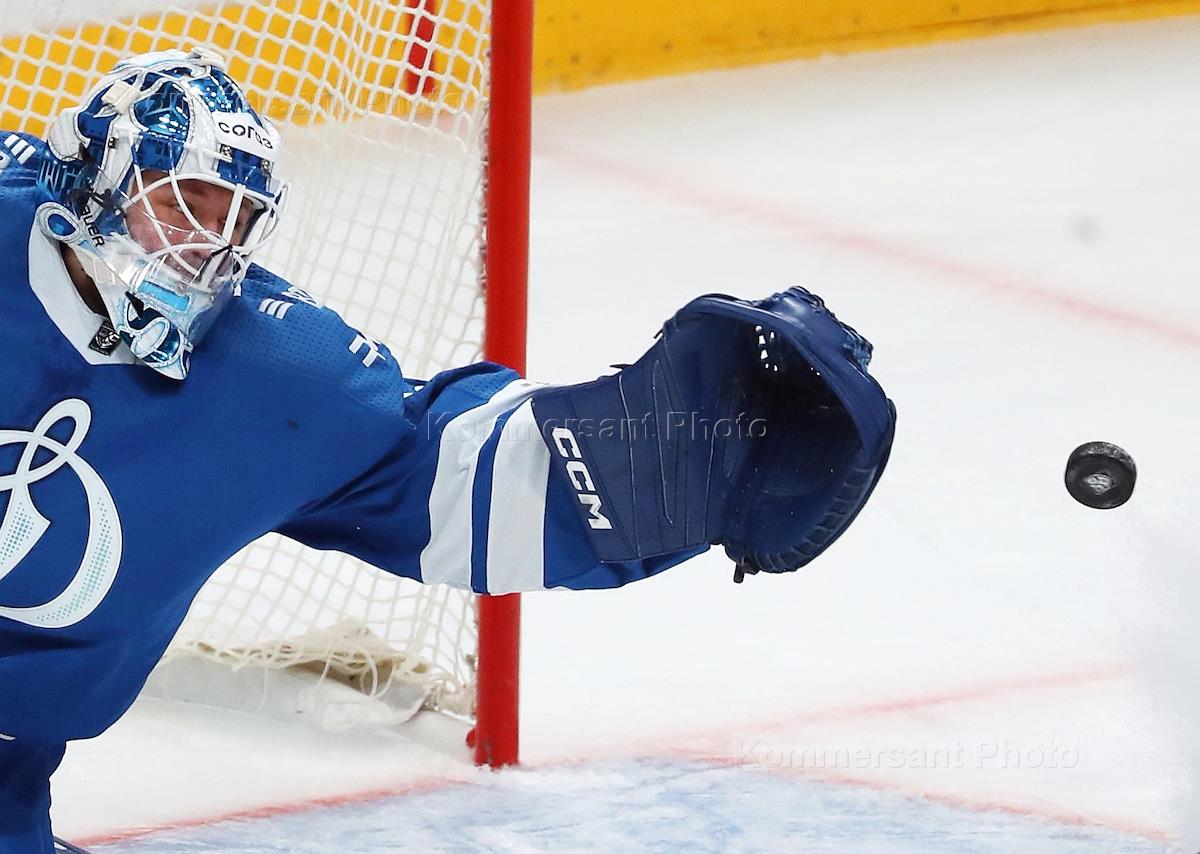 Континентальная Хоккейная Лига (КХЛ). Матч между командами "Динамо" (Москва) - "Локомотив" (Ярославль) на стадионе "ВТБ Арена". Вратарь команды "Динамо" Владислав Подъяпольский во время матча.