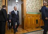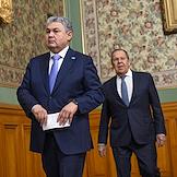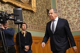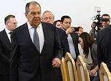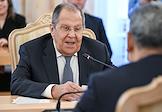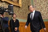 Переговоры министра иностранных дел России Сергея Лаврова с министром иностранных дел Казахстана Ермеком Кошербаевым в Доме приемов МИД России. Министр иностранных дел России Сергей Лавров (в центре) перед началом переговоров.