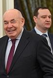 Переговоры министра иностранных дел России Сергея Лаврова с министром иностранных дел Казахстана Ермеком Кошербаевым в Доме приемов МИД России. Специальный представитель президента России по международному культурному сотрудничеству Михаил Швыдкой (слева) перед началом переговоров.