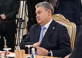 Переговоры министра иностранных дел России Сергея Лаврова с министром иностранных дел Казахстана Ермеком Кошербаевым в Доме приемов МИД России. Министр иностранных дел Казахстана Ермек Кошербаев во время переговоров.