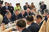 Переговоры министра иностранных дел России Сергея Лаврова с министром иностранных дел Казахстана Ермеком Кошербаевым в Доме приемов МИД России. Министр иностранных дел России Сергей Лавров (второй слева) перед началом переговоров.