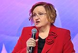 III Национальный съезд учебной промышленности "УЧПРОМ 2025" в конгресс-центре особой экономической зоны (ОЭЗ) "Технополис Москва". Главная пленарная дискуссия "Национальная учебная промышленность: вклад в достижение национальных целей". Президент Ассоциации предприятий индустрии детских товаров (АИДТ) Антонина Цицулина во время дискуссии.