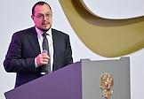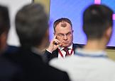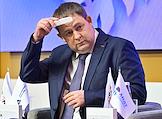 III Национальный съезд учебной промышленности "УЧПРОМ 2025" в конгресс-центре особой экономической зоны (ОЭЗ) "Технополис Москва". Главная пленарная дискуссия "Национальная учебная промышленность: вклад в достижение национальных целей". Руководитель Федерального агентства по техническому регулированию и метрологии (Росстандарт) Антон Шалаев во время дискуссии.