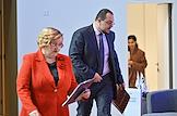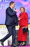 III Национальный съезд учебной промышленности "УЧПРОМ 2025" в конгресс-центре особой экономической зоны (ОЭЗ) "Технополис Москва". Главная пленарная дискуссия "Национальная учебная промышленность: вклад в достижение национальных целей". Заместитель руководителя Департамента инвестиционной и промышленной политики города Москвы Владимир Петраков (справа) и президент Ассоциации предприятий индустрии детских товаров (АИДТ) Антонина Цицулина (слева) перед началом дискуссии.