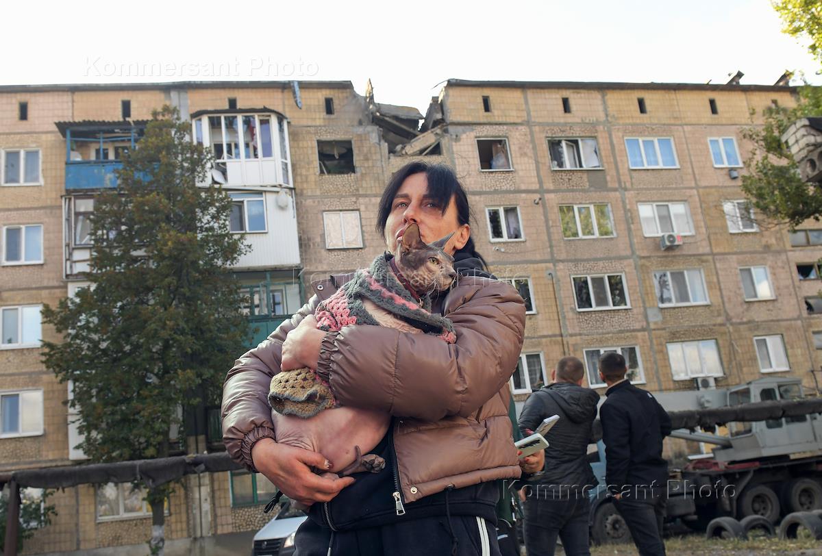 Последствия обстрела жилого дома в городе Ясиноватая Донецкой Народной Республики (ДНР).