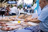 Выставка рыбной индустрии, морепродуктов и технологий Seafood Expo в конгрессно-выставочном центре "Экспофорум". Жанровая фотография. Участник выставки во время выкладки свежей рыба на стенде.
