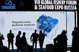 Выставка рыбной индустрии, морепродуктов и технологий Seafood Expo в конгрессно-выставочном центре "Экспофорум". Жанровая фотография.