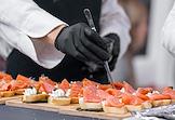 Выставка рыбной индустрии, морепродуктов и технологий Seafood Expo в конгрессно-выставочном центре "Экспофорум". Жанровая фотография. Приготовление блюд из морепродуктов для дегустации.