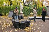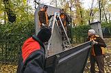 Виды Санкт-Петербурга. Жанровая фотография. Рабочие в Летнем саду во время укрытия скульптур тканью и деревянными футлярами на зимний период.