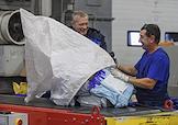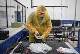 Учение по пресечению перемещения в посылках товаров, загрязненных радионуклидами, в Логистическом центре "Почты России" в Татарстане. Жанровая фотография.