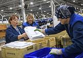 Работа Логистического центра "Почты России" в Татарстане. Жанровая фотография. Сотрудницы зоны таможенного контроля центра за работой.