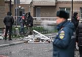 Последствия атаки БПЛА в жилом комплексе (ЖК) "Изумрудные холмы". Сотрудники со специальным оборудованием во время осмотра пострадавшей квартиры в ЖК.