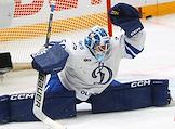 Континентальная Хоккейная Лига (КХЛ). Матч между командами "Спартак" (Москва) - "Динамо" (Москва) на стадионе "Мегаспорт". Вратарь команды "Динамо" Владислав Подъяпольский во время матча.