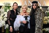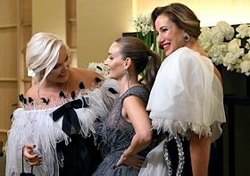 Показ кутюрной коллекции FW'25/26 в рамках закрытого вечера Модного Дома YANINA Couture в отеле Stella di Mosca. Слева направо: модельер Юлия Янина, владелица ювелирного бренда EIRINE Ирина Шамилова и старший вице-президент корпорации "Синергия" Ольга Мягких перед началом показа.