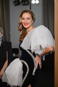 Показ кутюрной коллекции FW'25/26 в рамках закрытого вечера Модного Дома YANINA Couture в отеле Stella di Mosca. Старший вице-президент корпорации "Синергия" Ольга Мягких перед началом показа.