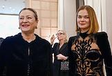 Показ кутюрной коллекции FW'25/26 в рамках закрытого вечера Модного Дома YANINA Couture в отеле Stella di Mosca. Модель Ксения Лукаш (слева) и владелица ювелирного бренда EIRINE Ирина Шамилова (справа) перед началом показа.