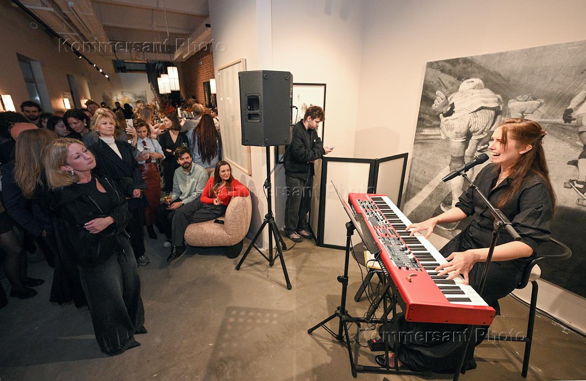 Церемония открытия нового пространства школы Masters "masters:DOM" в историческом здании "Кокоревского подворья" на Софийской набережной и выставки современного искусства из собрания основательницы школы Полины Бондаревой. Певица, композитор, поэт, основатель и лидер группы Nina Karlsson Нина Карлссон на церемонии.