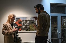Церемония открытия нового пространства школы Masters "masters:DOM" в историческом здании "Кокоревского подворья" на Софийской набережной и выставки современного искусства из собрания основательницы школы Полины Бондаревой. Художники Петр Кирюша (в центре) и Алина Глазун (справа) на церемонии.
