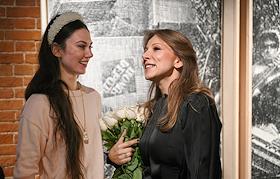 Церемония открытия нового пространства школы Masters "masters:DOM" в историческом здании "Кокоревского подворья" на Софийской набережной и выставки современного искусства из собрания основательницы школы Полины Бондаревой. Исскусcтвовед, основатель школы Masters Полина Бондарева (слева) на церемонии.