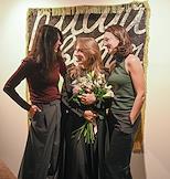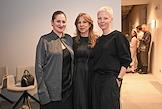 Церемония открытия нового пространства школы Masters "masters:DOM" в историческом здании "Кокоревского подворья" на Софийской набережной и выставки современного искусства из собрания основательницы школы Полины Бондаревой. Слева направо: сооснователь проекта newnow Марго Макарова, искусcтвовед, основатель школы Masters Полина Бондарева и художник, куратор, сооснователь проекта newnow Уля Савич на церемонии.