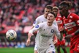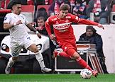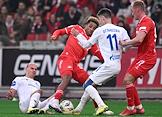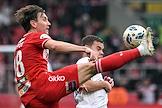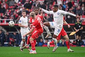 Мир Российская Премьер-Лига (РПЛ) 2025/2026. 13-й тур. Матч между командами "Спартак" (Москва) - "Оренбург" (Оренбург) на стадионе "Лукойл Арена". Игрок команды "Спартак" Кристофер Ву (справа) и игрок команды "Оренбург" Степан Оганесян (в центре) во время матча.
