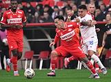 Мир Российская Премьер-Лига (РПЛ) 2025/2026. 13-й тур. Матч между командами "Спартак" (Москва) - "Оренбург" (Оренбург) на стадионе "Лукойл Арена". Игрок команды "Спартак" Манфред Угальде (справа) во время матча.