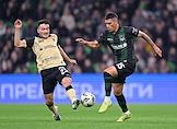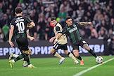 Мир Российская Премьер-Лига (РПЛ) 2025/2026. 13-й тур. Матч между командами "Краснодар" (Краснодар) - "Рубин" (Казань) на стадионе "Ozon Арена". Игрок команды "Краснодар" Диего Коста (в центре) и игрок команды "Рубин" Мирлинд Даку (слева) во время матча.