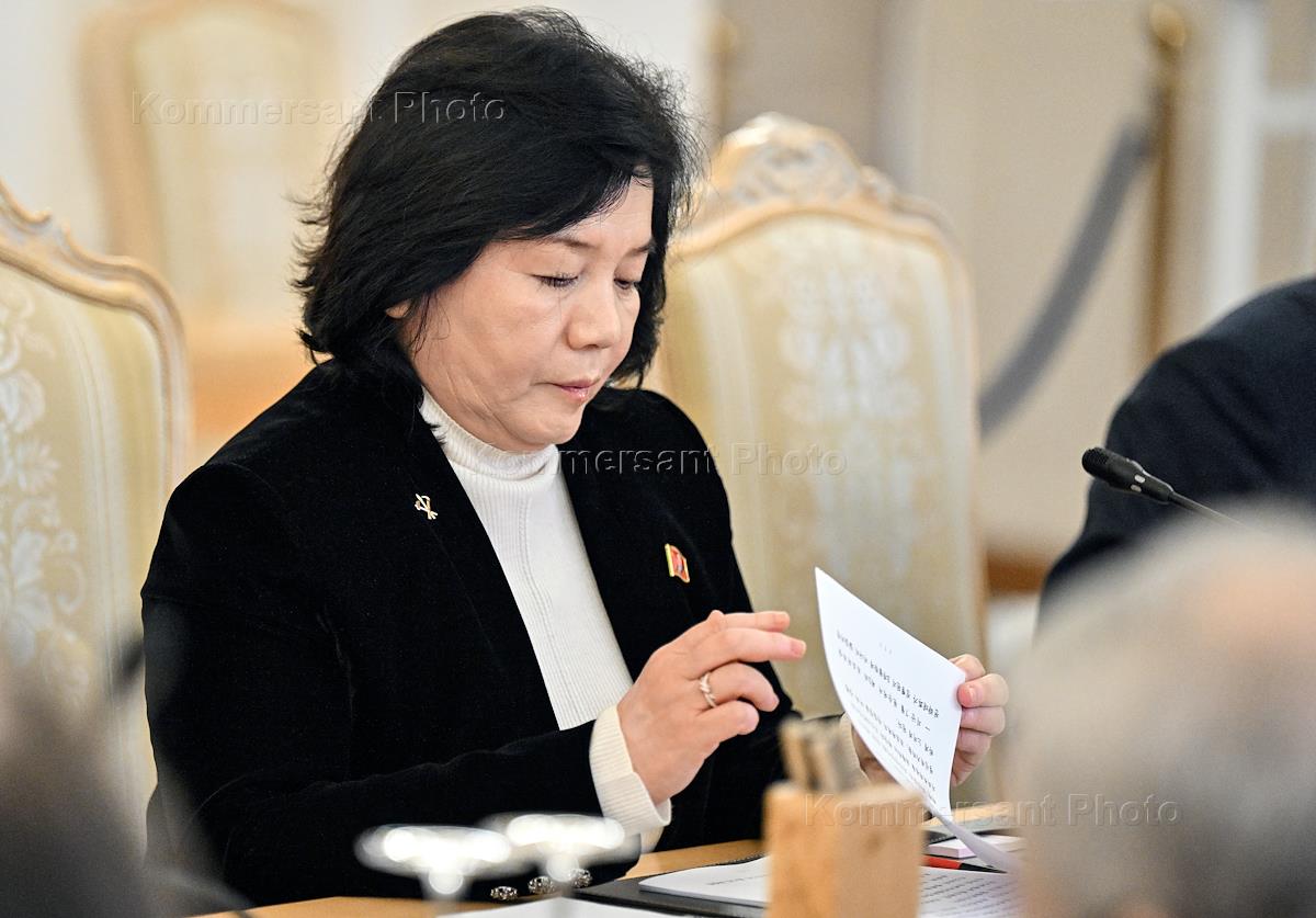 Переговоры министра иностранных дела России Сергея Лаврова и министра иностранных дел КНДР Сон Хи Цой в особняке МИД России. Министр иностранных дел КНДР Сон Хи Цой во время переговоров.