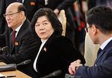 Переговоры министра иностранных дела России Сергея Лаврова и министра иностранных дел КНДР Сон Хи Цой в особняке МИД России. Министр иностранных дел КНДР Сон Хи Цой (в центре) во время переговоров.