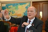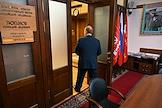 Ежегодная встреча "Самовар Зюганова" лидера КПРФ, руководителя фракции КПРФ в Государственной думе (ГД) России Геннадия Зюганова с журналистами в ГД России. Лидер КПРФ, руководитель фракции КПРФ в ГД России Геннадий Зюганов перед началом встречи.