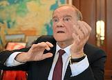 Ежегодная встреча "Самовар Зюганова" лидера КПРФ, руководителя фракции КПРФ в Государственной думе (ГД) России Геннадия Зюганова с журналистами в ГД России. Лидер КПРФ, руководитель фракции КПРФ в ГД России Геннадий Зюганов (справа) во время встречи.