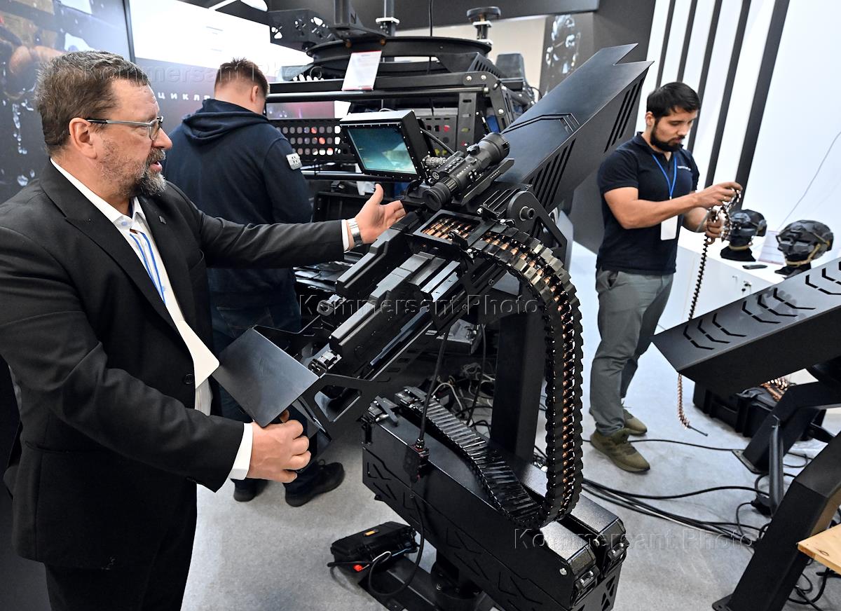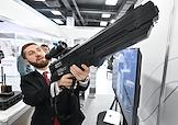 XXIX Международная выставка средств обеспечения безопасности государства "Интерполитех" в павильоне № 57 ВДНХ. Жанровая фотография. Профессиональное ружье против БПЛА для РЭБ "Аргумент-2".